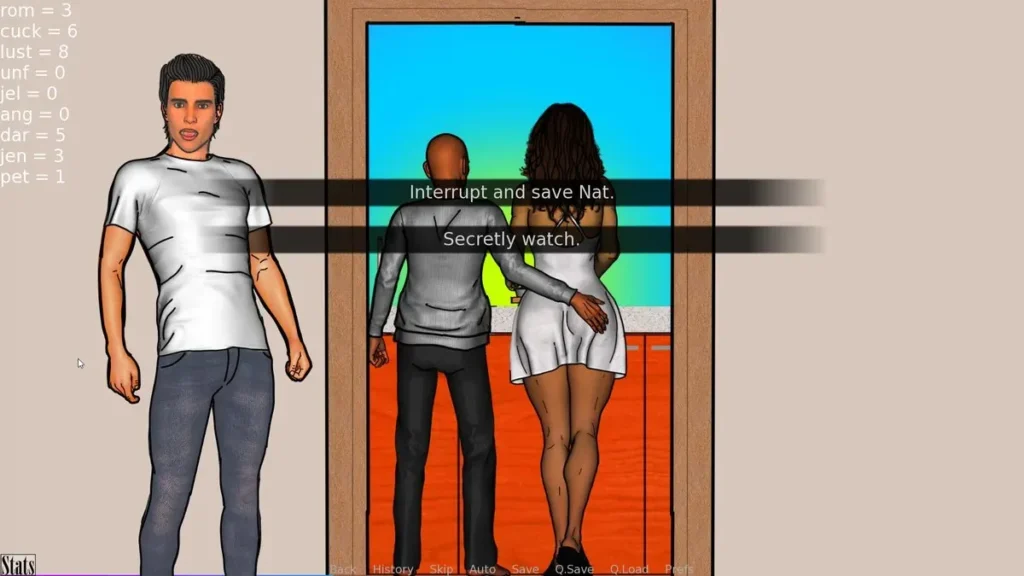 | Tell Natalie you’re uncomfortable with Darnell’s attention | Increases Jealousy (Jel), decreases Cuck | Leads to arguments, protective scenarios, and a more possessive storyline. |